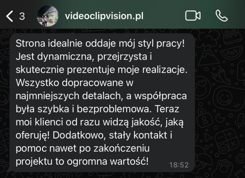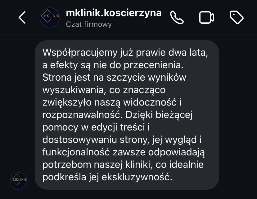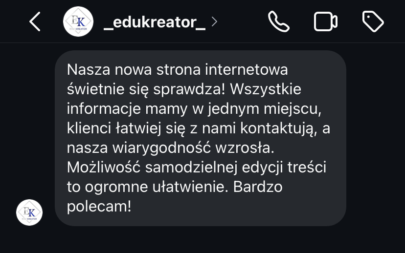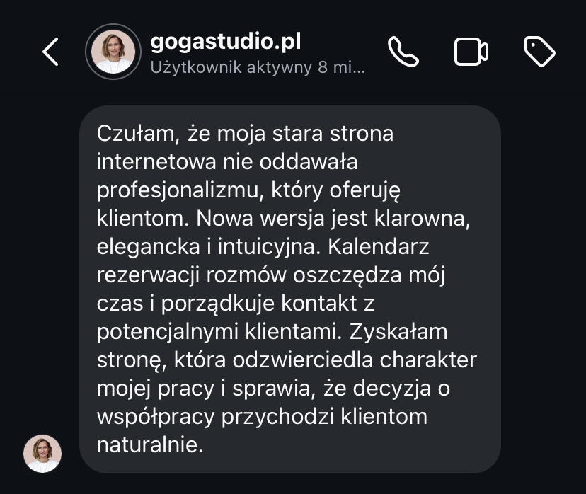 „Moja strona, która była bardzo przestarzała, teraz wygląda bardzo profesjonalnie. Zwiększyła się ilość kontaktów poprzez formularz kontaktowy. Mam coraz więcej zapytań.”