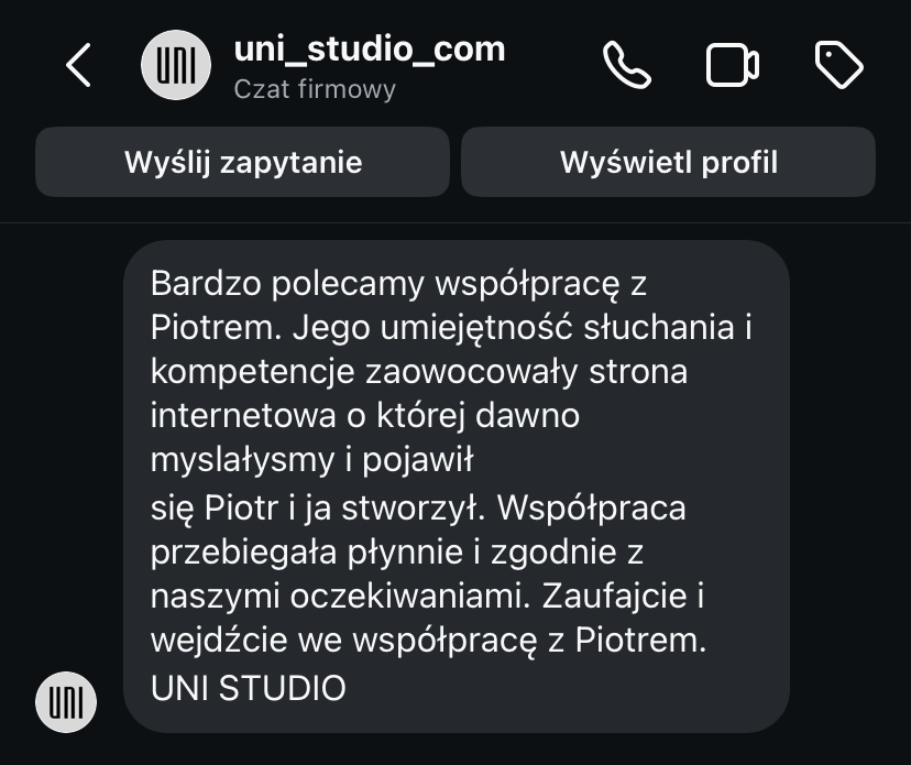 „Nasza nowa strona internetowa odzwierciedla potencjał, który Piotr wydobył z naszej pracowni.
